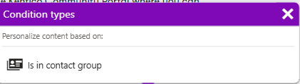 The example above defines a customer condition that will check if our current contact is a member of a specific contact group. Once deployed, an editor can choose this condition type and make a selection of Contact Groups that the visitor needs to be in.