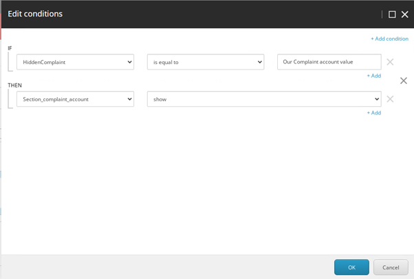 When adding a section we can then configure the following condition: